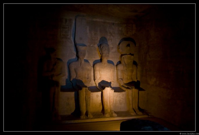 Les 4 statues au fond du temple, où Ramsès se représente comme l'égale des dieux