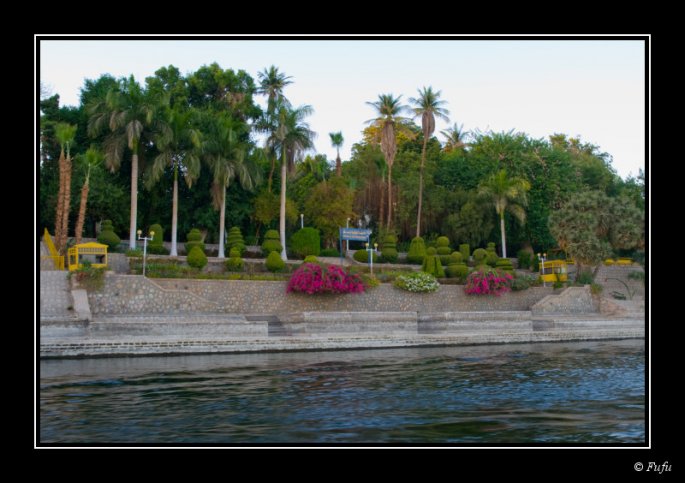 Il se fait un peu tard, et le nombre de touriste affublé sur les rebords de l'ile en cette fin d'après-midi nous repousse: on choisit de seulement longer l'ile. Tant pis, on la visitera si jamais un jour on revient à Assouan.