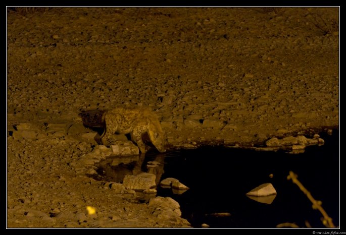 L’explication viendra d’elle-même. Deux minutes après que les 2 rhinos soient partis, une hyène tachetée fait son apparition