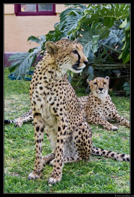 Avant de rentrer dans le jardin de la maison, on reçoit quelques consignes de prudence. Ce sont des guépards apprivoisés certes, mais cela reste des animaux caractériels et potentiellement dangereux. On écoute avec attention : enlever les lunettes de soleil (ils n’aiment pas leurs reflets), ne pas toucher à la queue ni aux oreilles, attention aux APN et autres trucs qui pendouillent (le guépard est un animal joueur