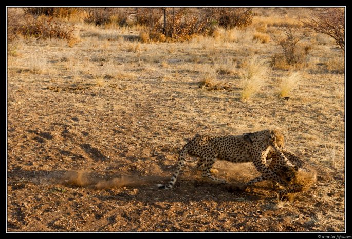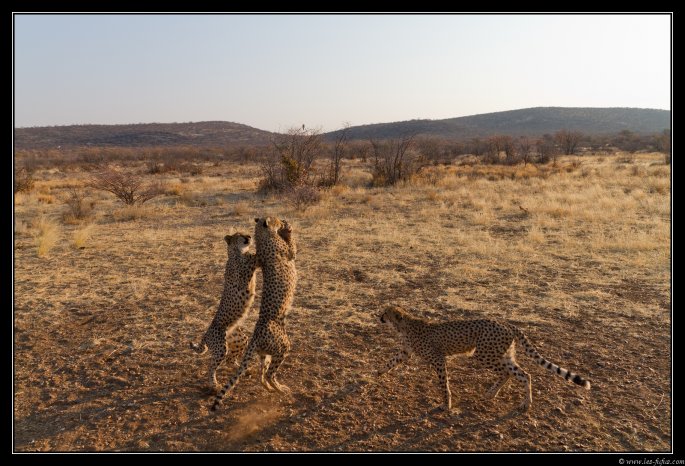 Les guépards sont néanmoins particulièrement entreprenants et agressif. Plus d’une fois, ils n’hésitent pas à simuler une attaque sur l’un des 2 gars et ne s’arrêtent que un ou 2 mètres avant.