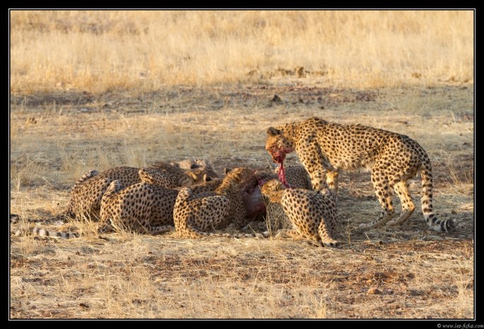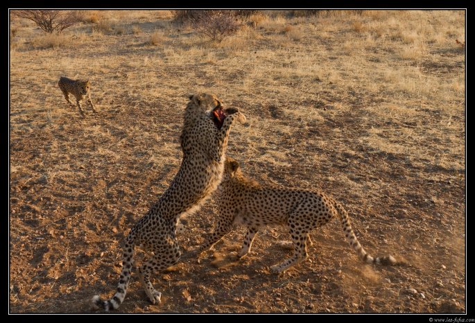 Coté guépards, les esprits s’échauffent et certains font des démonstrations de supériorité pour s’assurer un part du festin.