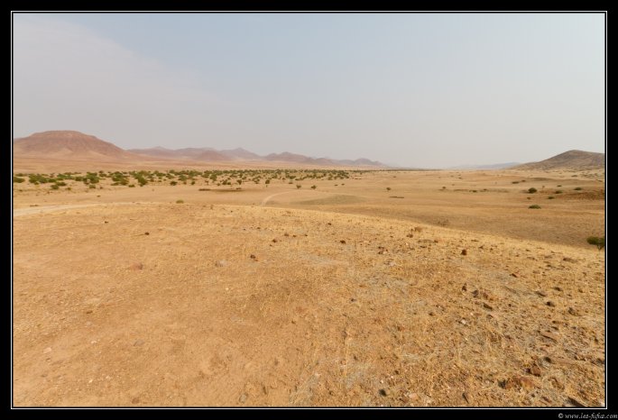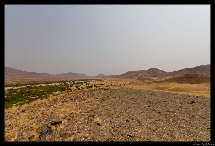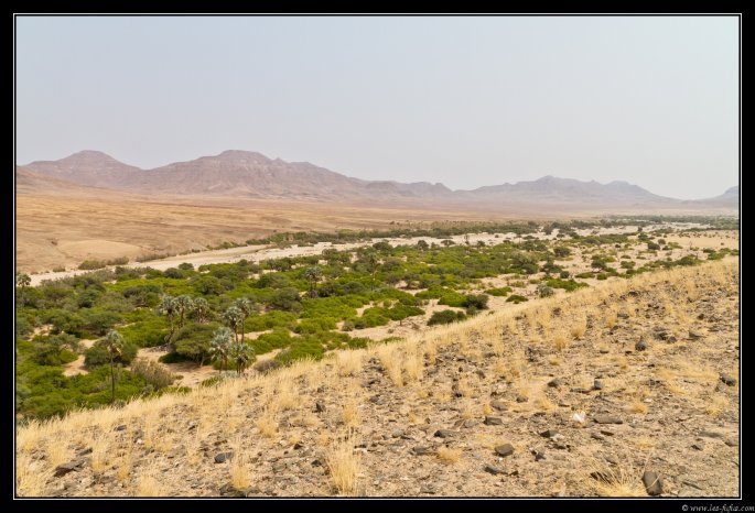 Avant la redescente du col, un magnifique panorama sur la rivière Hoarusib s’offre à nous.