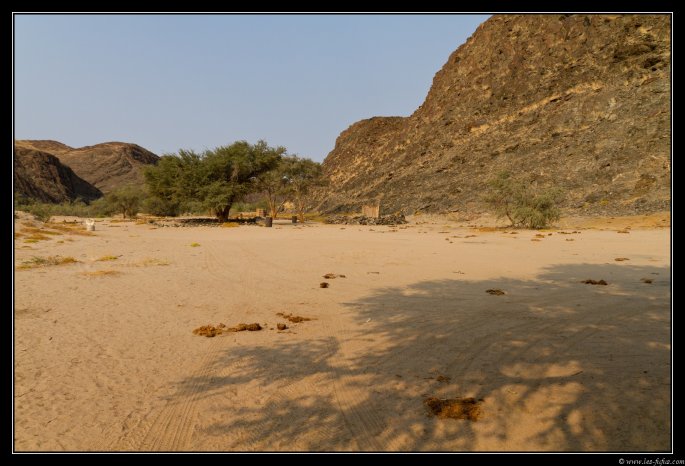 Quelques centaines de mètres et nous voila à l’entrée du Save the Rhino Ugab Camp. La gérante nous rejoint, et nous demande si nous avons réservé. Je lui réponds non et là, elle fait une petite moue (il est vrai que ca doit être dur de gérer un camping avec 1 ou 2 touristes par jour