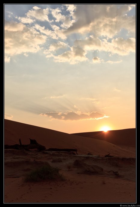 Les portes internes ouvrent une heure avec le lever du soleil (à 5h30 durant la période de notre voyage). Ainsi, quand on dort au camping ou au lodge de Sesriem (donc ceux gérés par le NWR), on est sur de pouvoir voir le lever de soleil sur le site.