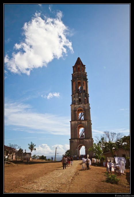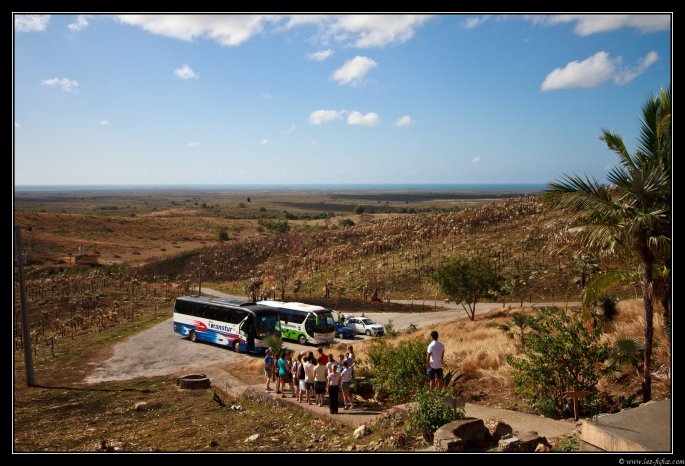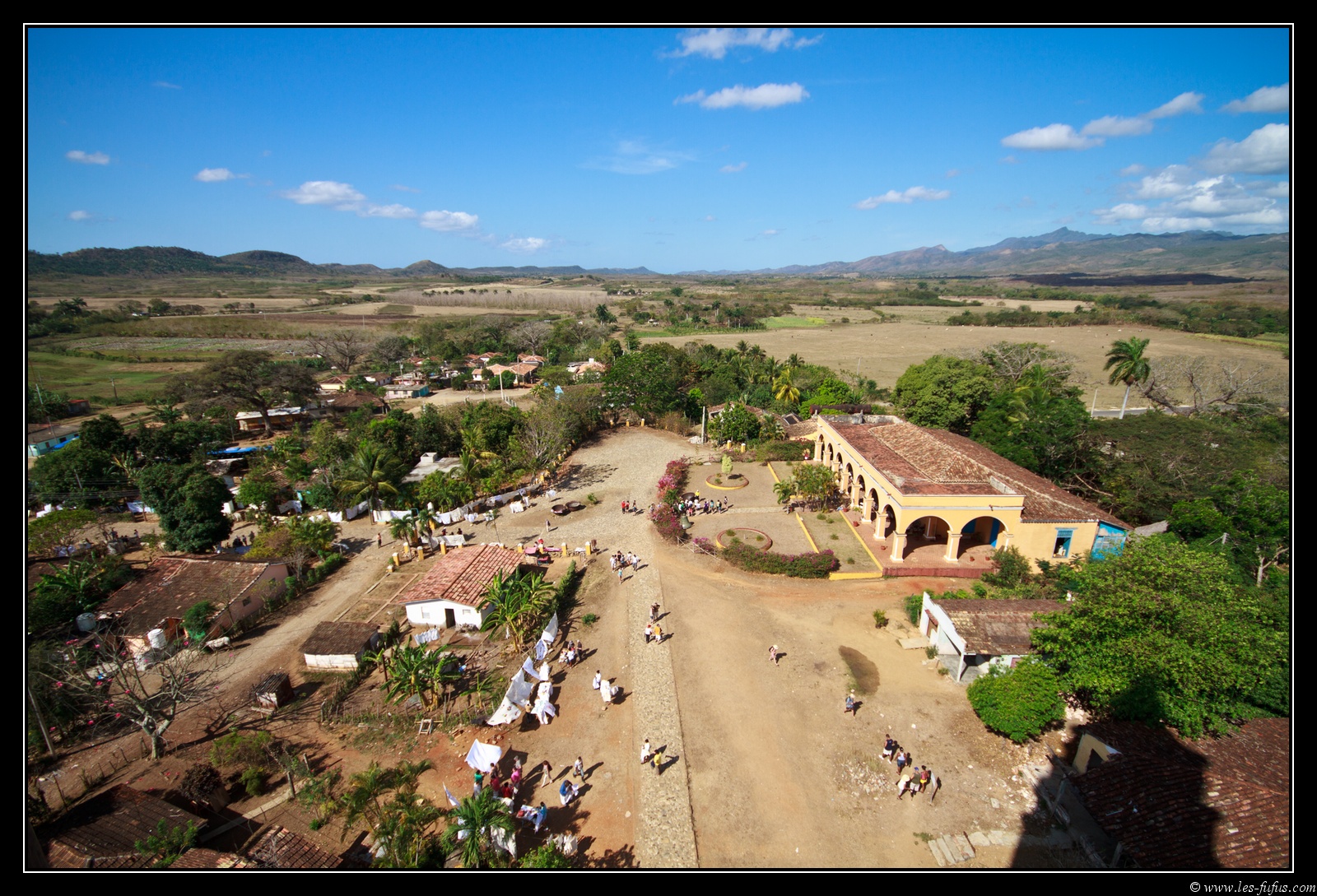 La route continue pour encore une dizaine de kilomètres avant notre premier arrêt à Manaca-Iznaga, une des haciendas de la vallée, transformée en restaurant.