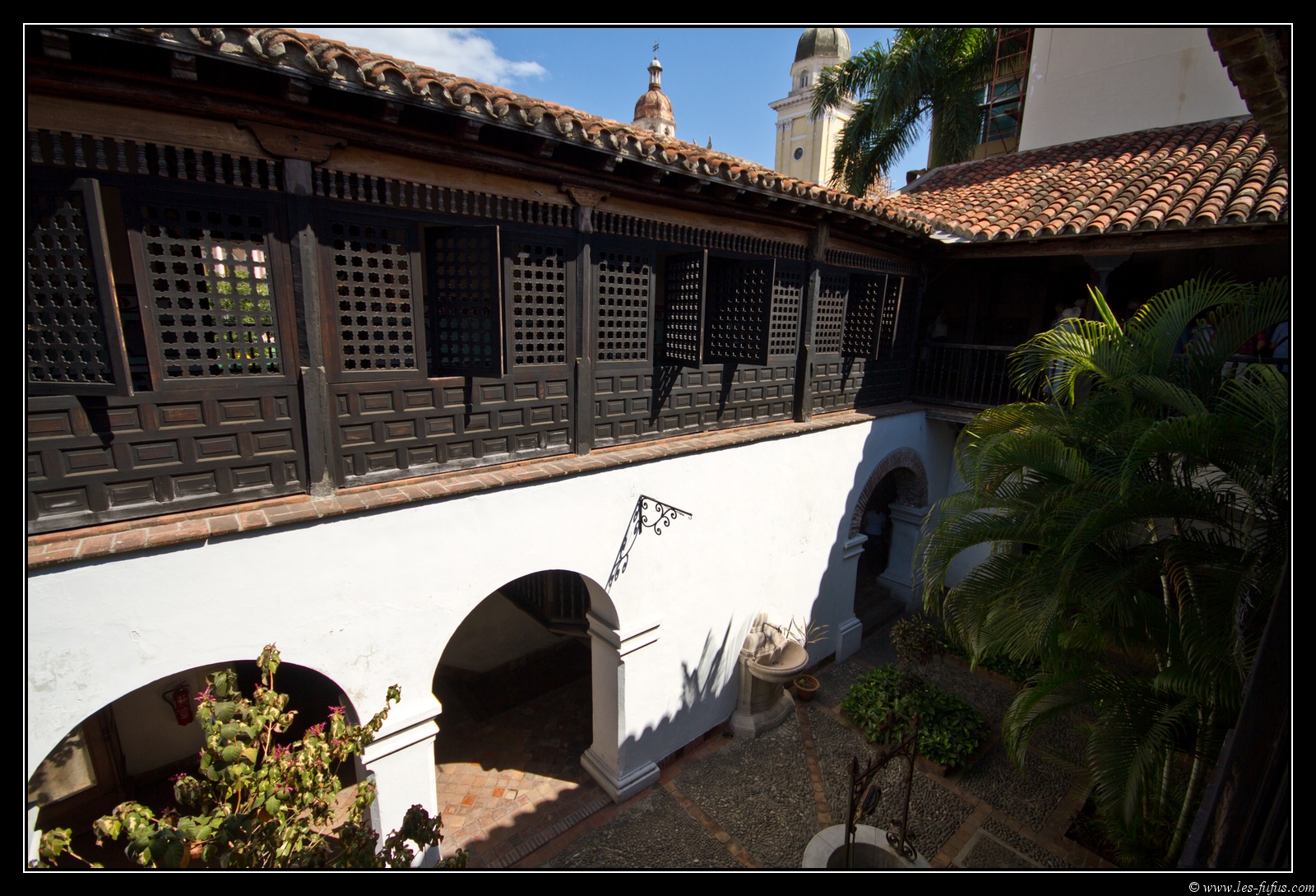 Nous nous rendons ensuite à la Casa de Diego Velázquez, la plus ancienne demeure (1522) de Cuba reconnaissable à son style andalou. On y trouve le Musée de l'Art Colonial. La visite est vraiment intéressante. Le seul petit problème sont les gardiennes du musée. Chacune d’elles est responsable de 2-3 pièces et elles se mettent en tête de vous faire une description de tout ce que vous regarder, avec bien des fois des largesses sur l’authenticité de leurs récits. Elles attendent bien entendu une petite pièce, mais au bout de la quatrième, c’est lassant.