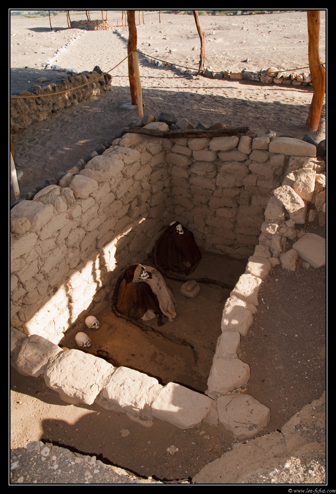 Il y a juste des trous circulaire ou rectangulaires, avec au fond, face à l’est, des momies.