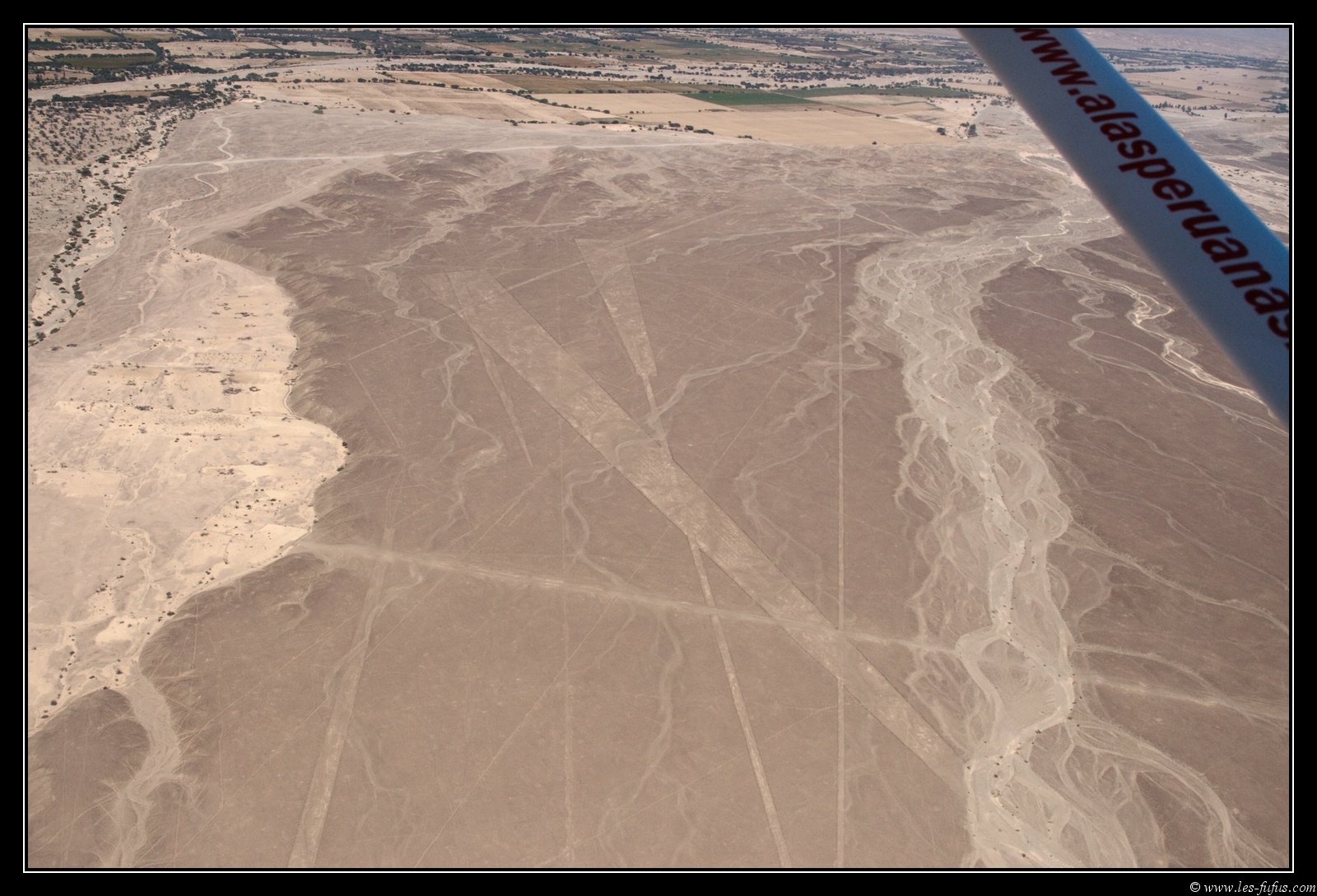 On décolle et on part en direction du désert de Nazca. Le vol durera une bonne grosse demi-heure. Le survol d’une figure est simple : on fait un virage très serré à droite pour que les gens du coté droit voient bien la figure, puis tout de suite après, un virage très serré à gauche pour les gens de gauche. Au bout de la dixième figure, vous avez l’estomac un peu remué