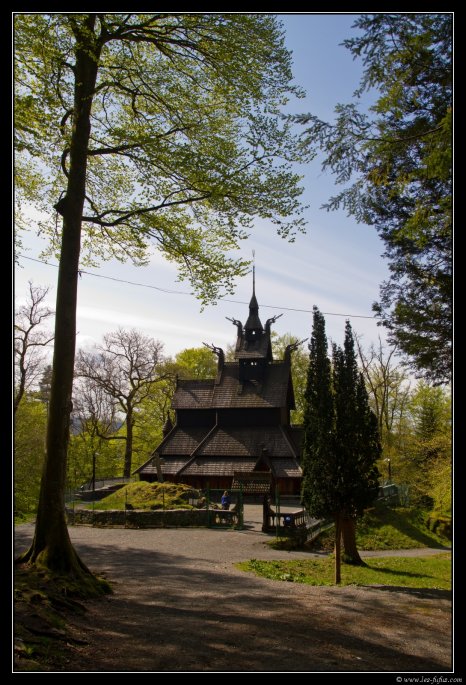 Vers 9h30, je pars vers le sud de Bergen pour visiter la petite église en bois debout de Fantoft (lien Wikipédia). Elle a brulé il y a 20 ans et c’est désormais une reconstruction. Elle vaut tout de même le coup, perdue au milieu d’une petite forêt.