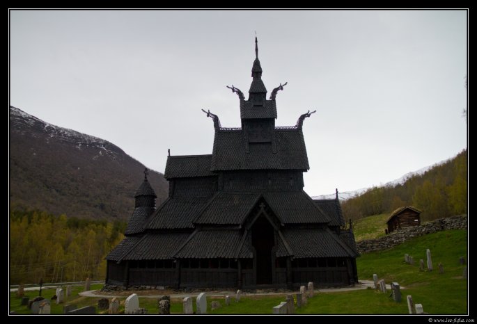 On débouche dans la vallée de Lærdalen et je m’enfonce dans les montagnes et rejoins la ville de Borgund. La visite de l’église en bois debout locale s’impose (lien Wikipédia). C’est la plus ancienne, elle date de 1160.