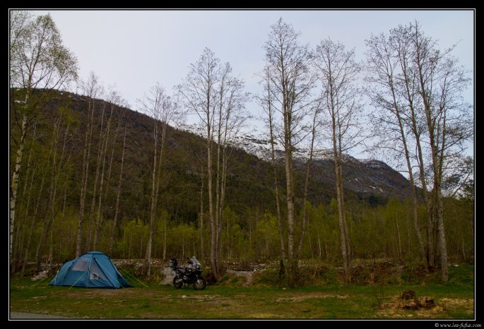 Mon road-book de la journée est fini. Je reviens sur mes pas sur quelques kilomètres et me trouve un camping abordable, en bordure d’une rivière.