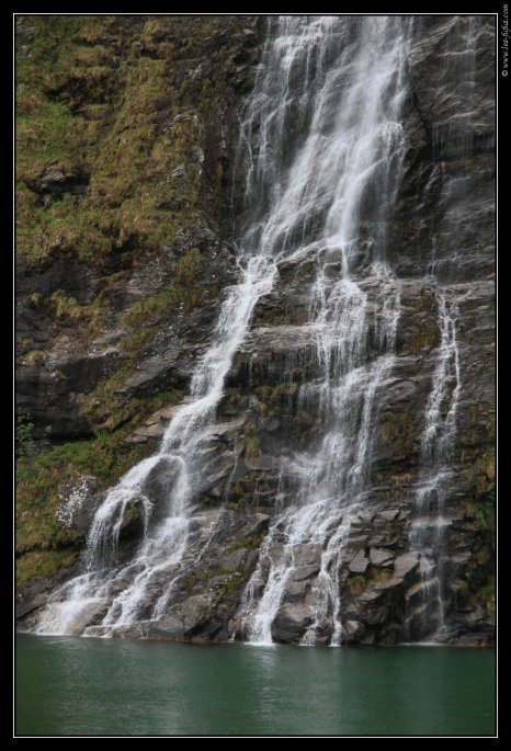 Ce ferry fait une mini-croisière sur une des perles de la Norvège : le Geirangerfjorden. C’est donc trés touristique. Ainsi je vous épargnerai mes commentaires sur le car d’espagnols et le car de chinois présents sur place.