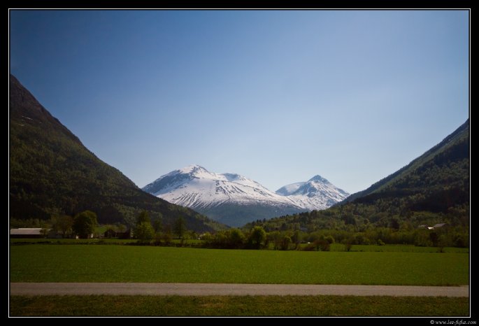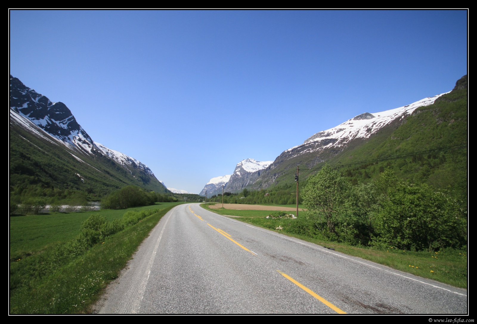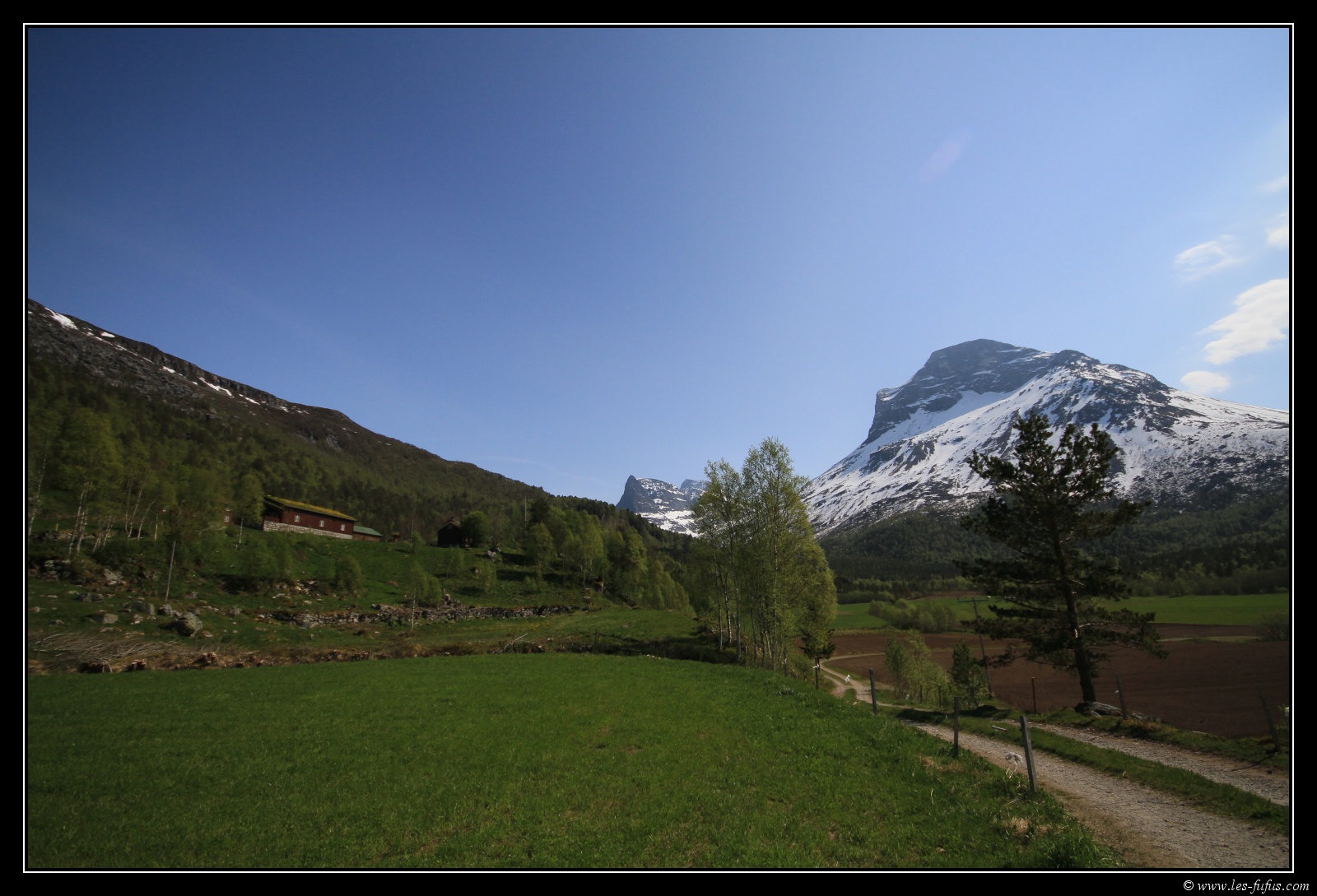 Arrivé à la ville de Sunndalsøra, je fais un crochet pour rejoindre Innerdalen, une vallée réputée comme étant l'une des plus jolies de Norvège. C’est en effet très plaisant, il n’y a personne hormis les agriculteurs travaillant dans leurs champs.