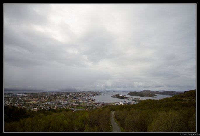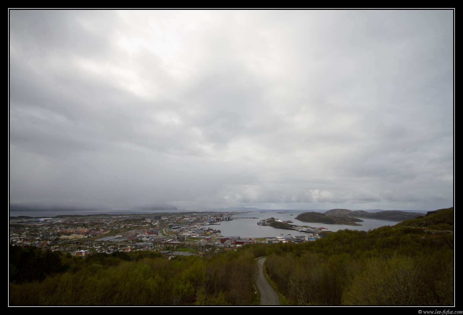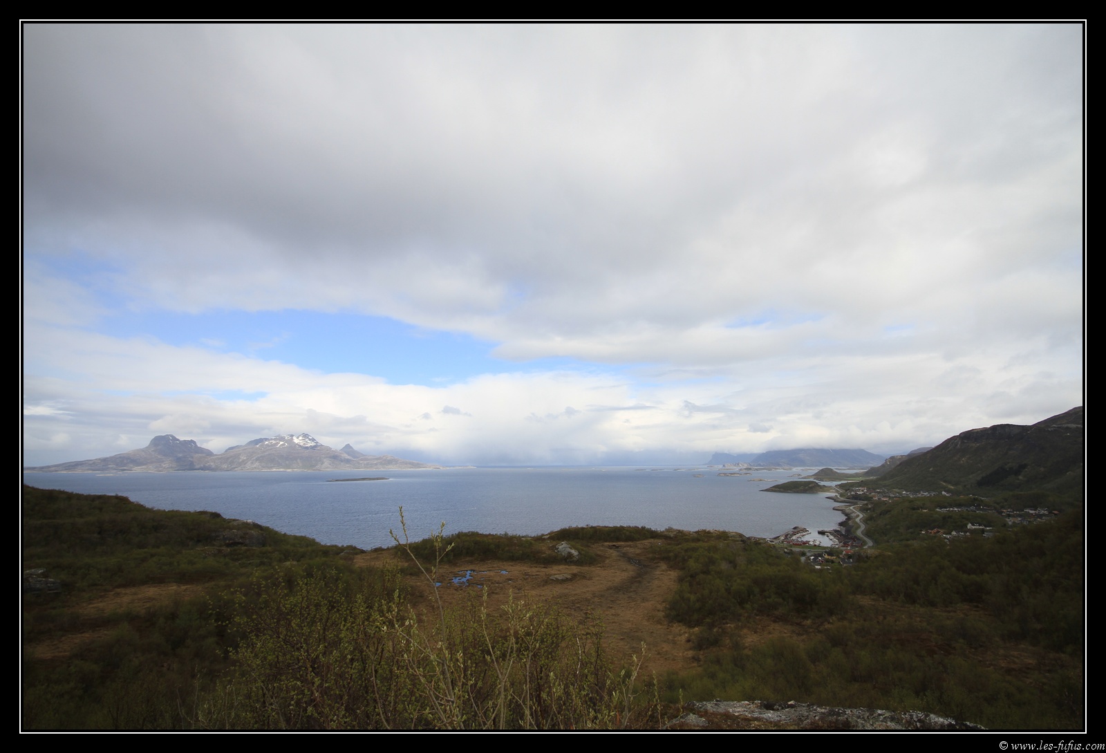 Je me rends sur le point de vue du Mount Rønvik. Il y a une antenne relais. Logiquement, on pourrait voir les iles Lofoten d’ici, mais il ne faut pas trop espérer vu les nuages. Néanmoins la visibilité reste plutôt bonne.