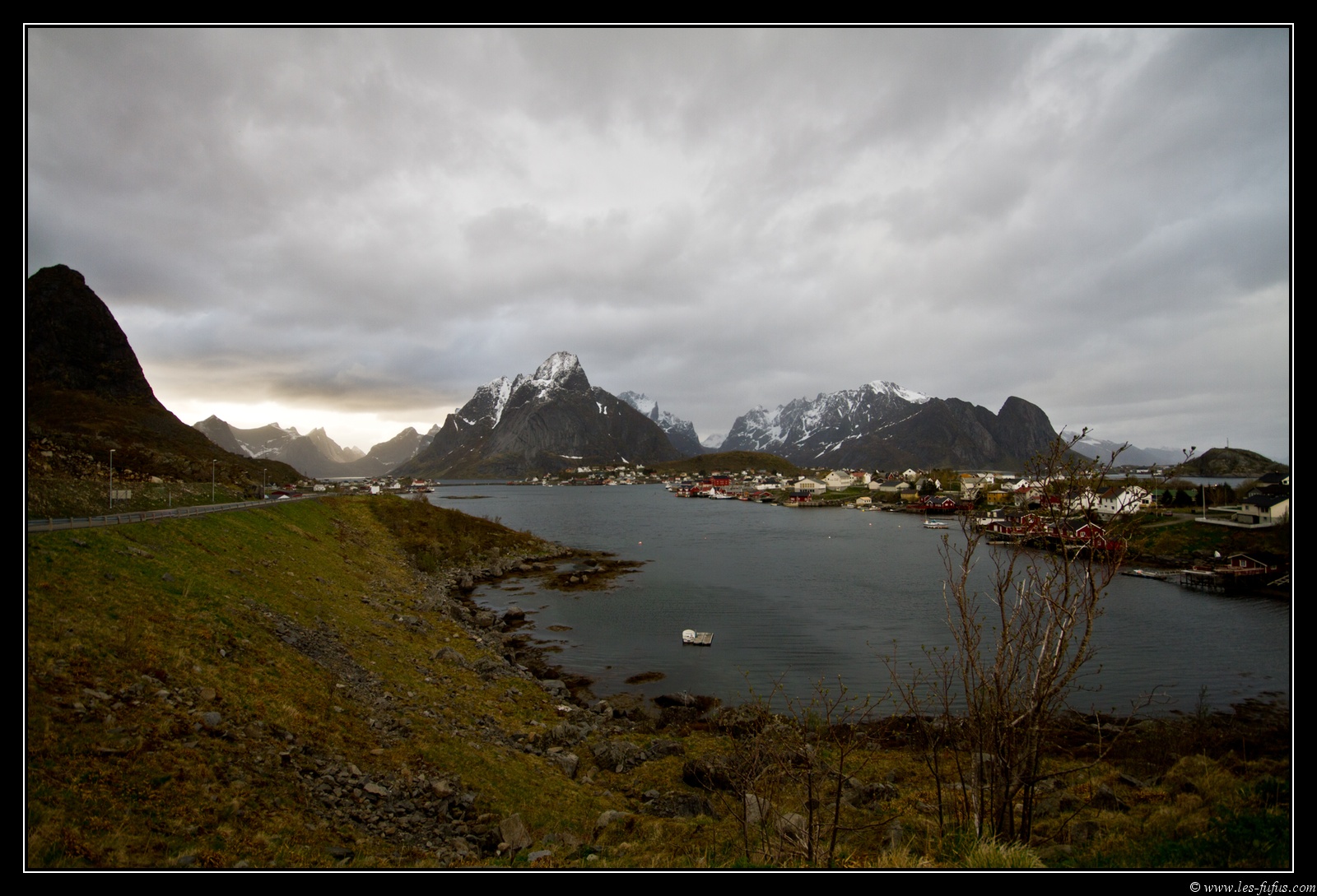 Nous accostons à Moskenes et je récupère ma moto. Tout s’est très bien passé … ouf. Une fois sur la terre ferme, je me dirige vers la ville de Reine pour trouver un hytter. J’en trouve un … à plus de 700 couronnes soit 100 euro le cabanon en bois … ils sont fous dans ce pays !
