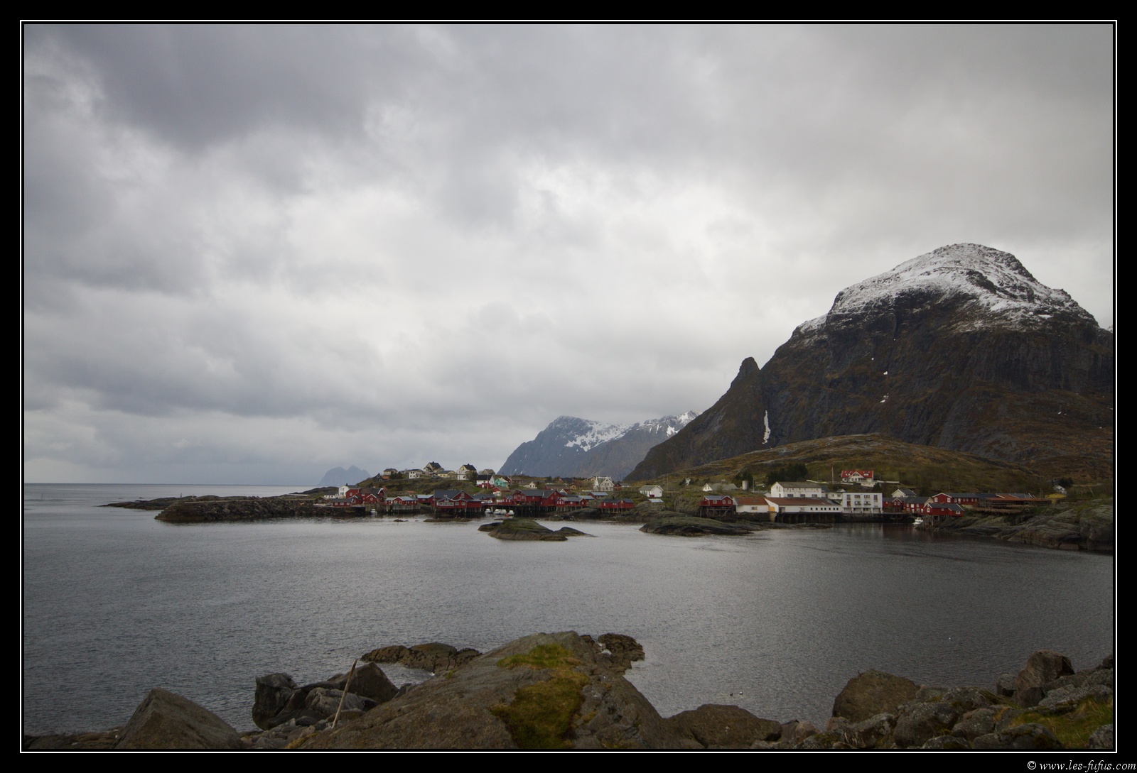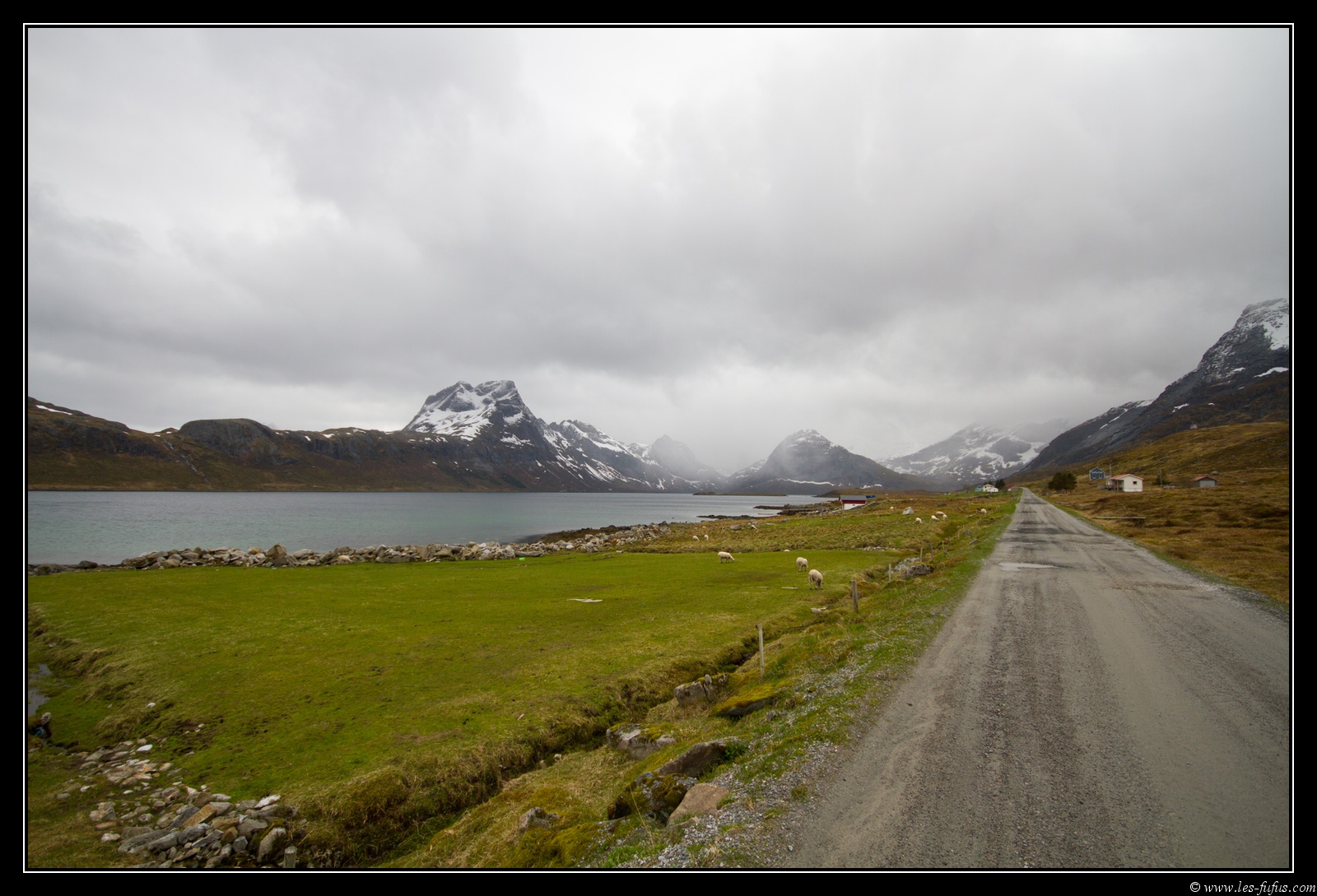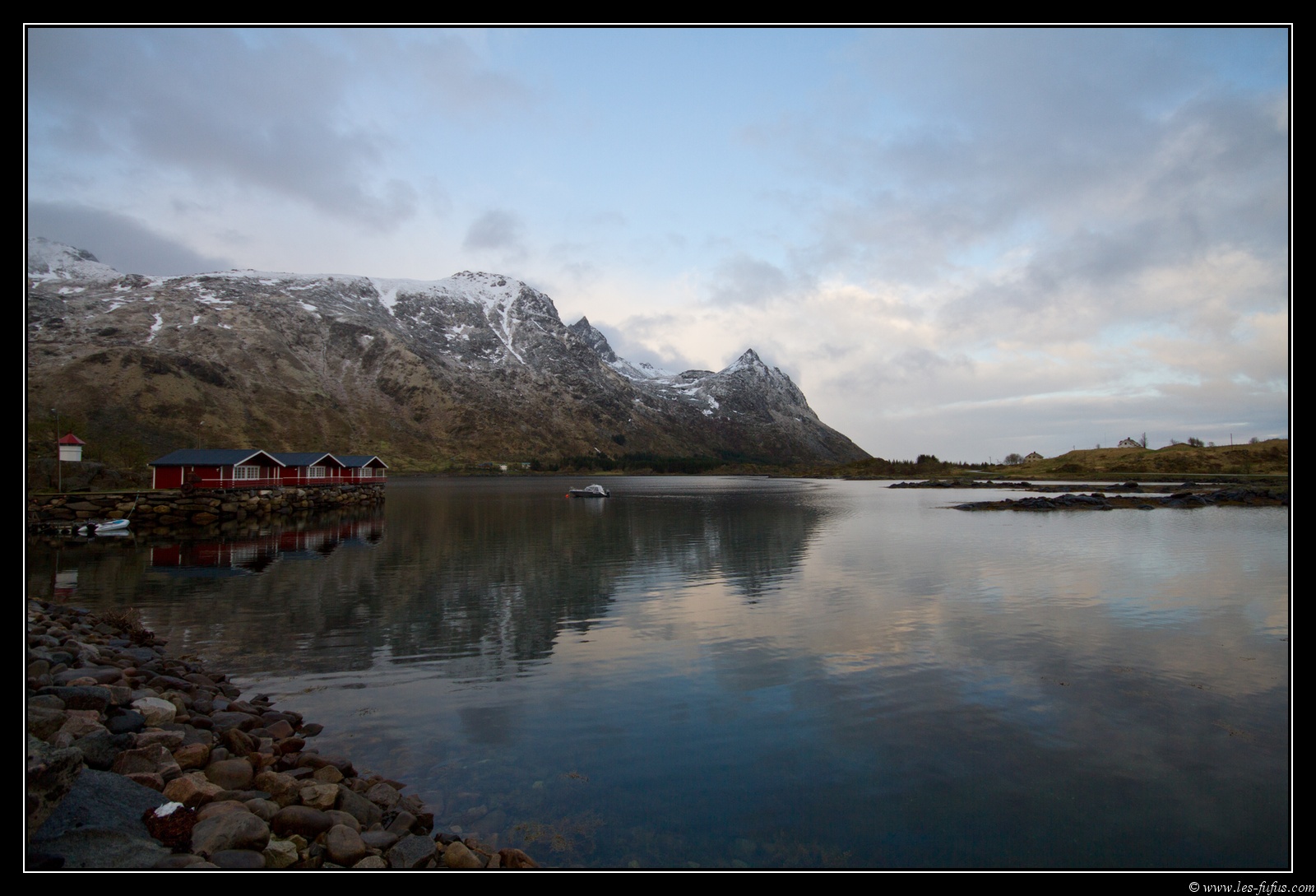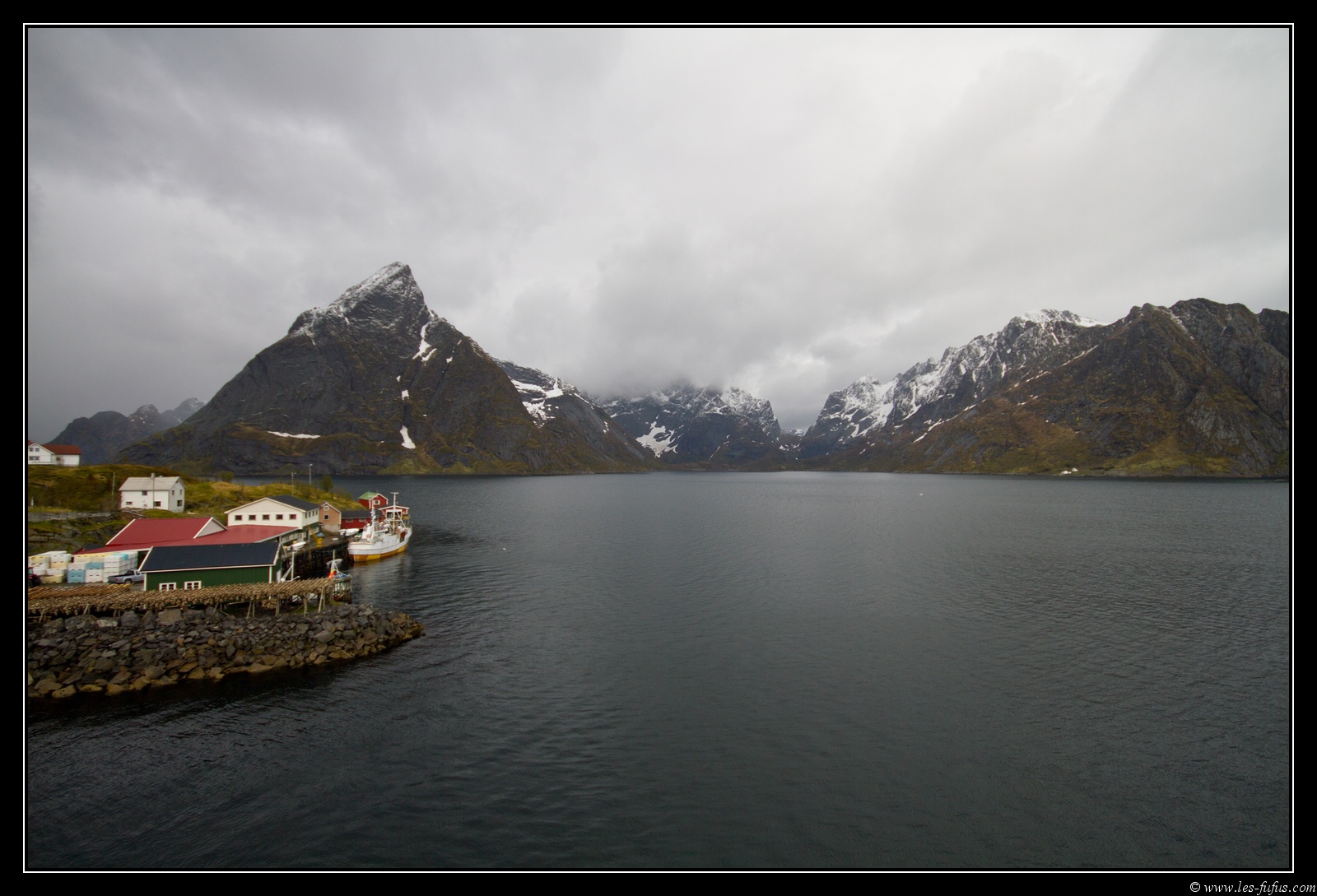 Ne pouvant profiter des paysages, je me concentre sur les habitations et là, la désuétude continue : tout n’est qu’artificiel. Il y a bien quelques pécheurs ici où là, mais la grande majorité des maisons sont en fait des hytters avec des boutiques souvenirs à coté. Et vu qu’il n’y a pas beaucoup de touristes, tout est fermé. Je ne trouverai même pas un seul bar ouvert de toute la journée pour me réchauffer et boire un café. Le pire étant Nusfjord, accessible aux touristes uniquement contre un billet d’entré !!! Super !