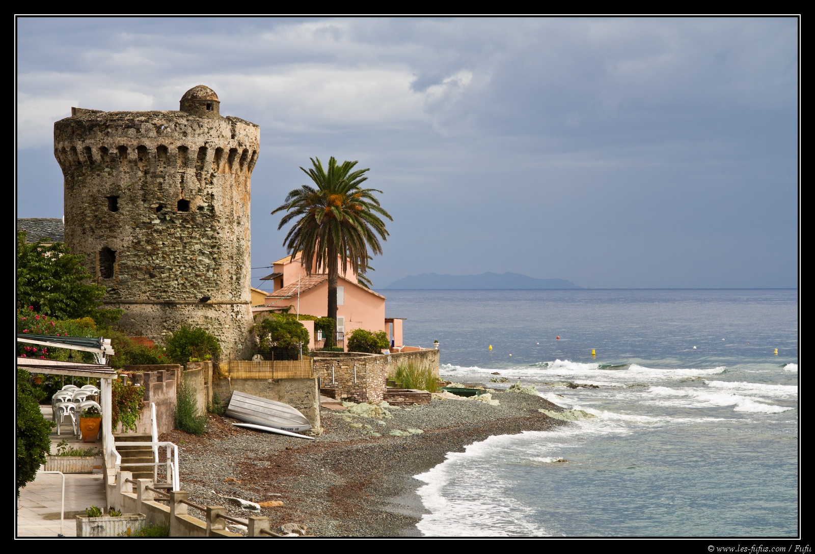 Donc finalement, on reprend la route principale et partons en direction du Cap Corse. Nous marquons un premier arrêt à la Tour Génoise de Miomo