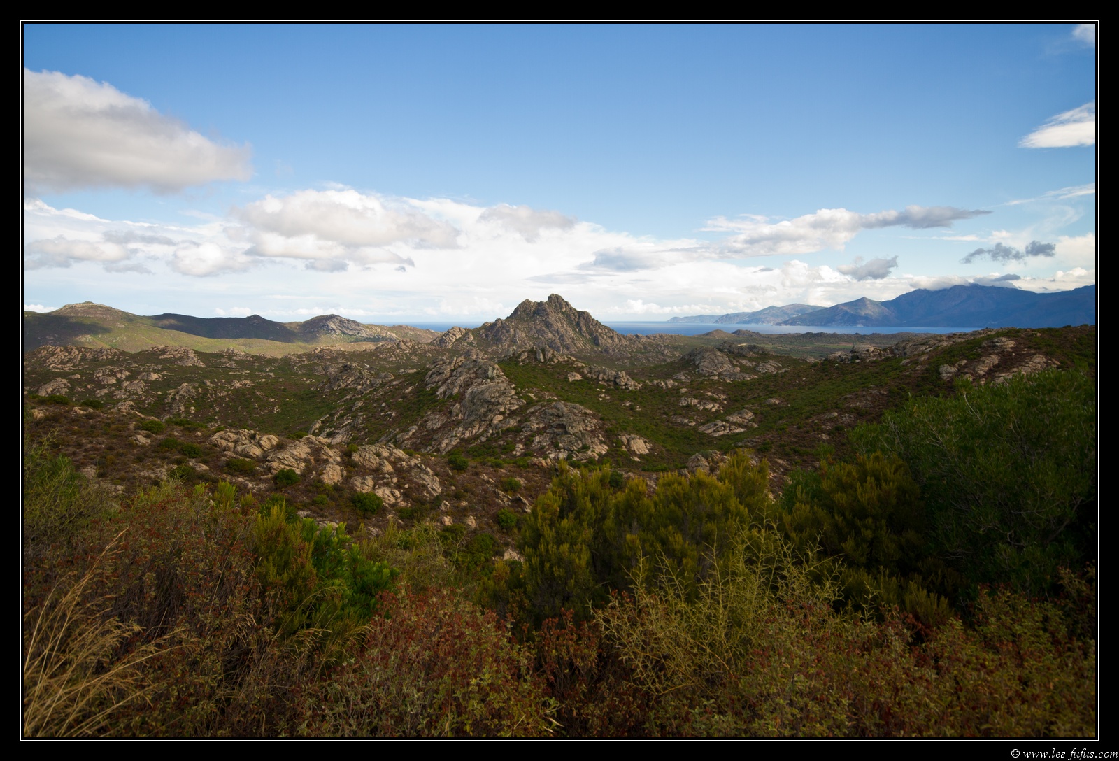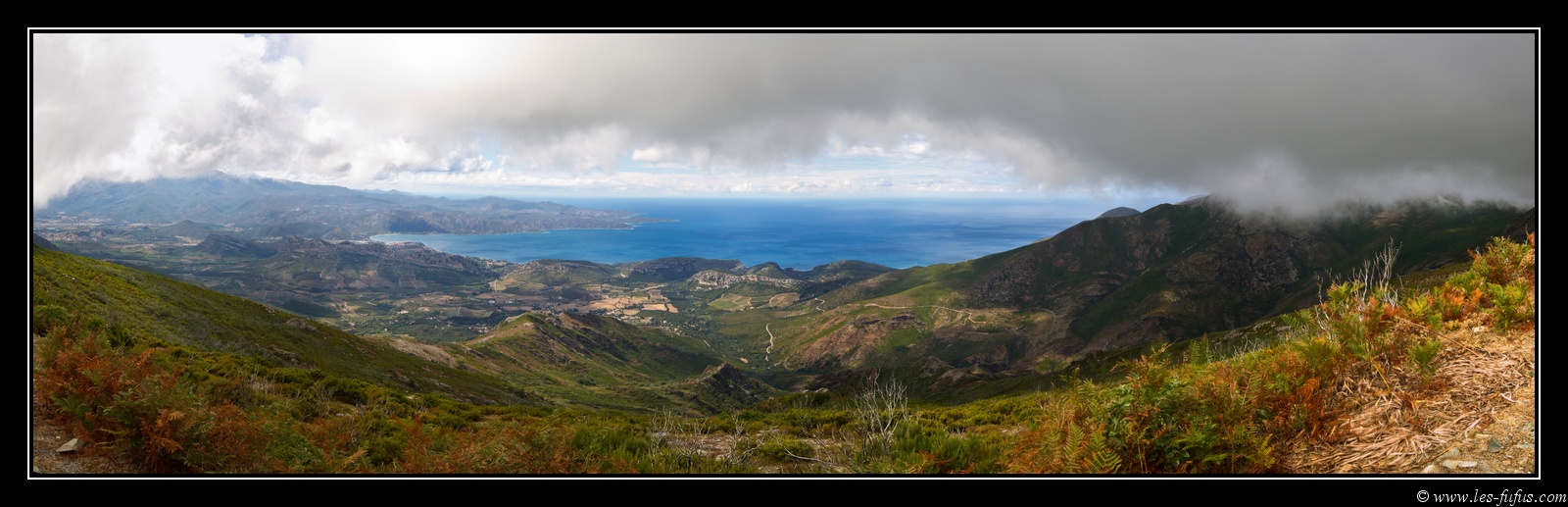 Nous poursuivons la route de montagne et rejoignons le col de Teghime. Tout de suite, j’embraye pour la route accédant à la station météo de Serra di Pigno, Le premier kilomètre est pourri, mais ensuite la petite route est un billard, simplement accolée aux précipices. On s’arrêtera un peu avant le haut de la montagne, les nuages étant trop bas. N’empêche, quelle vue !!!