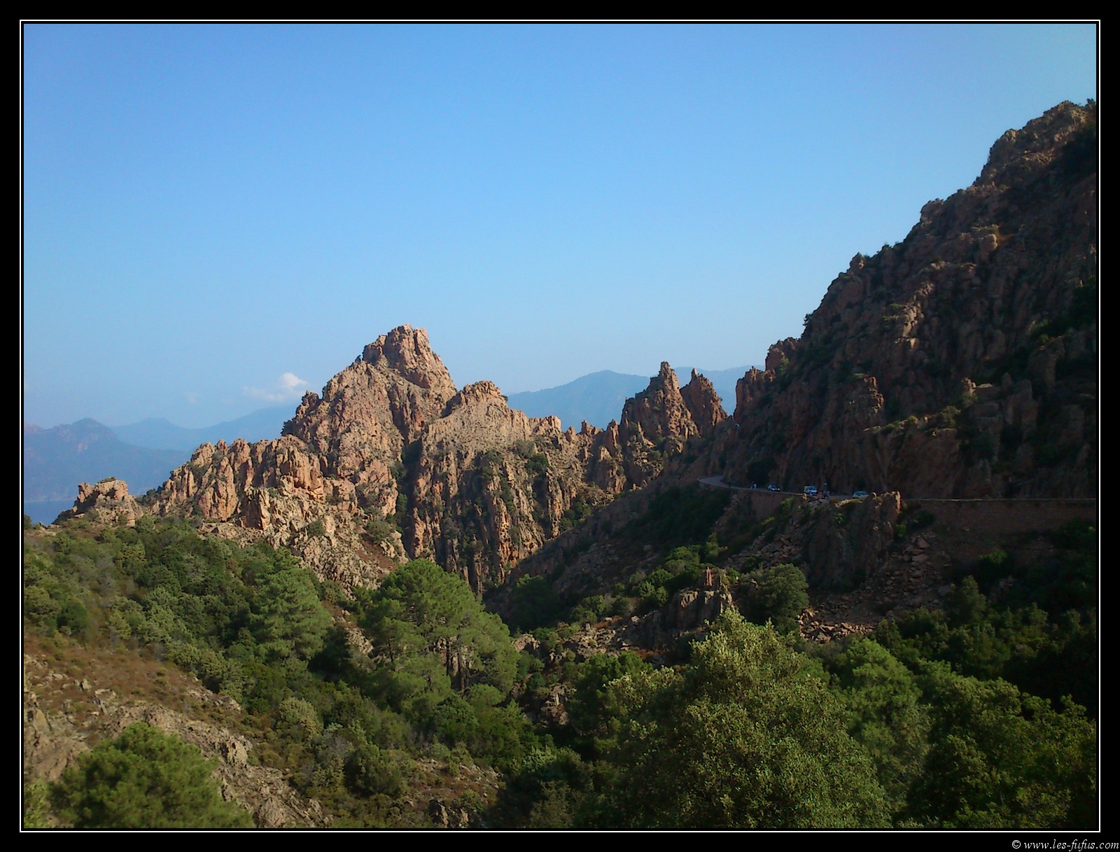 Après le petit déjeuner, nous quittons l’hôtel et prenons la direction de Piana et de ses célèbres calanques. On marque un premier arrêt photo.