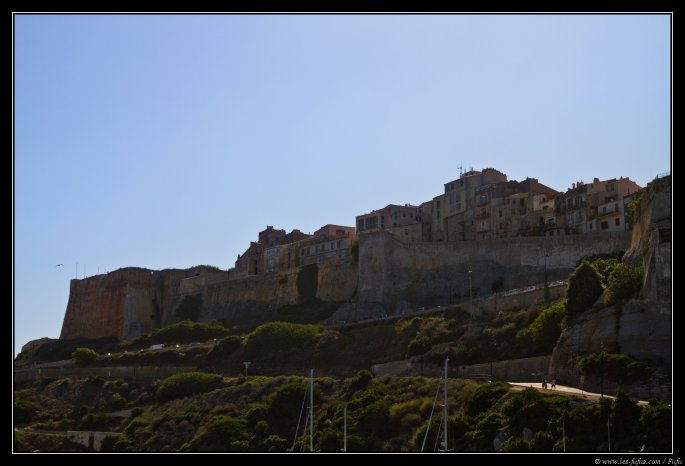 Nous longeons les hautes murailles de la ville et passons à coté des pontons, avec d’un coté, les petits bateaux des corses, et de l’autre coté, ceux réservés aux luxueux yachts.