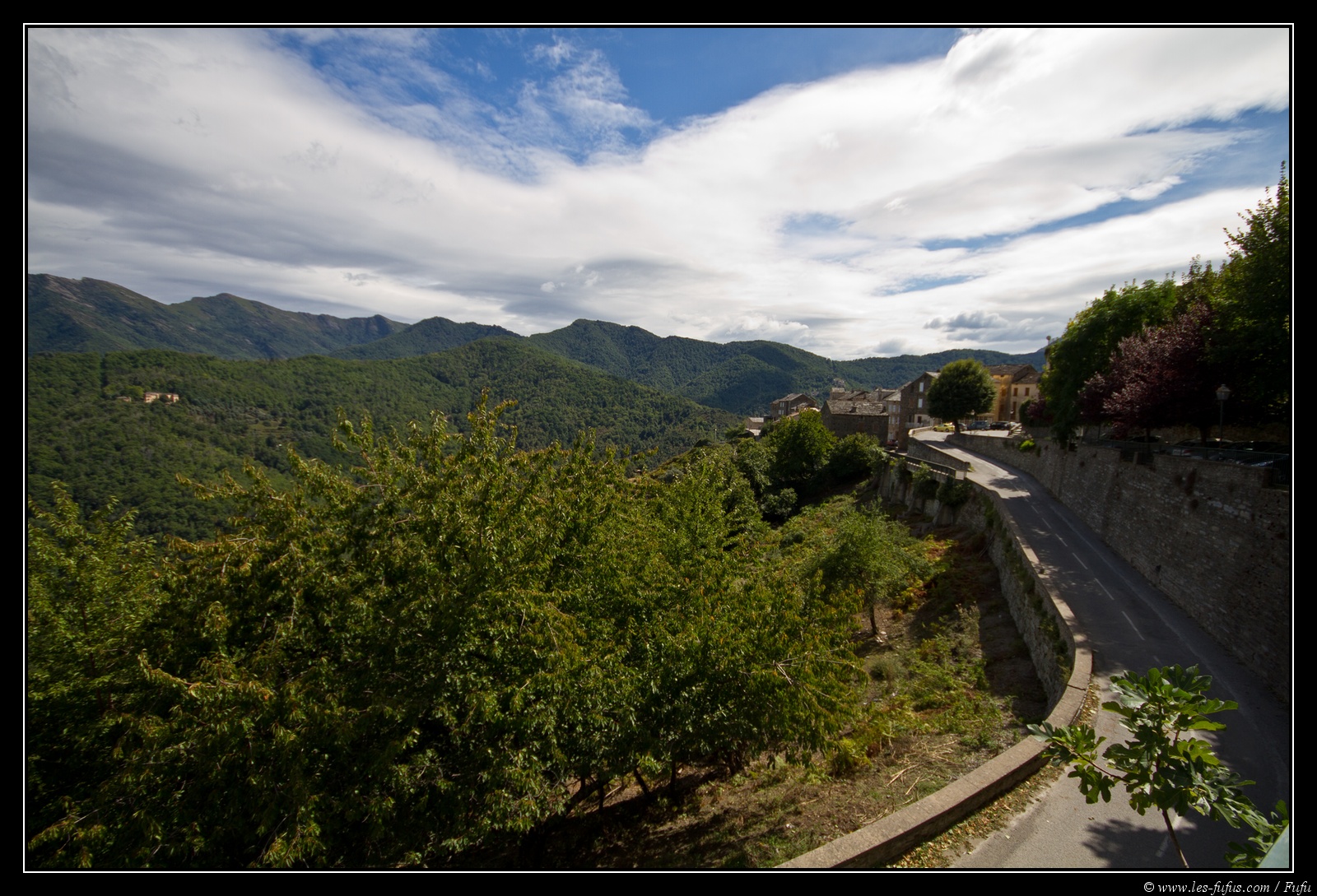Arrivé à ce village, il faut se rendre compte d’une évidence : on n’avance pas, le temps commence à compter et la fatigue de 2 semaines de vacances en moto se fait sentir. J’avais encore prévu quelques détours dans les montagnes, mais il vaut mieux jouer la carte de la sécurité et rejoindre Bastia le plus directement possible. Je reprogramme mon GPS et nous voilà parti en direction de la N193. On mettra encore quelque temps pour la rejoindre, la route étant vraiment très sinueuse.