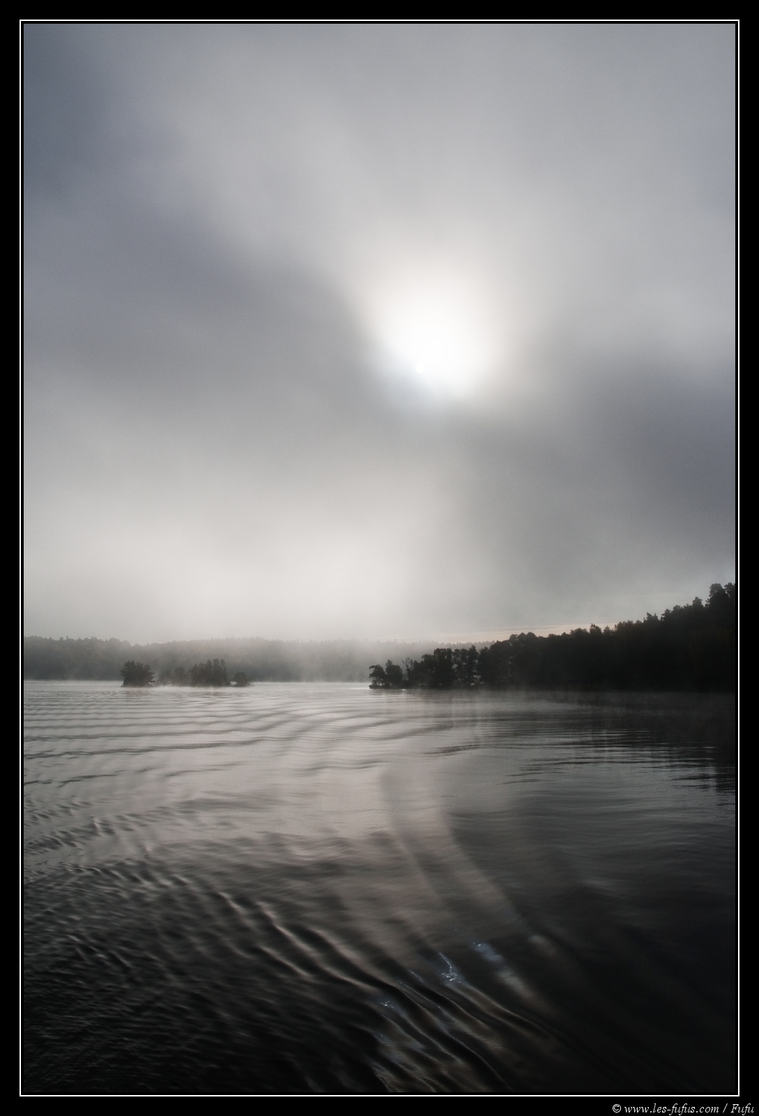 On se rend au city hall où partent différents ferries, dont notamment celui allant au Palais Drottningholm (lien Wikipédia). On embarque à 10h00. Le trajet prend environ 1h-1h15, et permet d'apprécier l'archipel de Stockholm. En plus la brume est encore bien présente sur certaines zones, donnant une atmosphère particulière aux lieux.