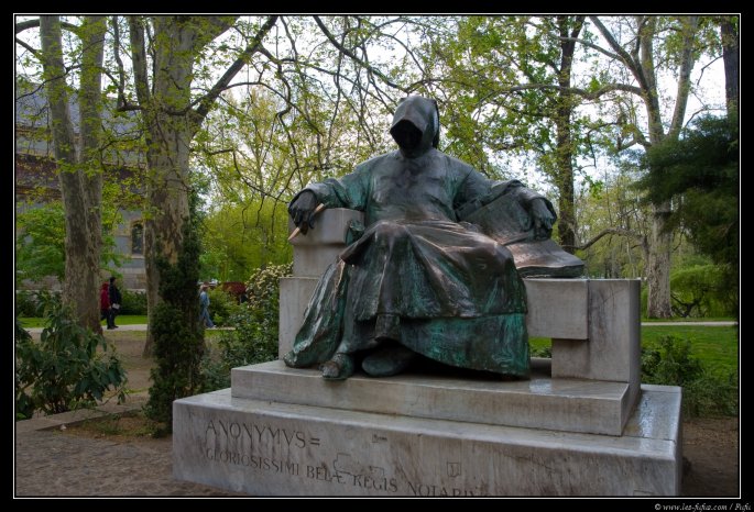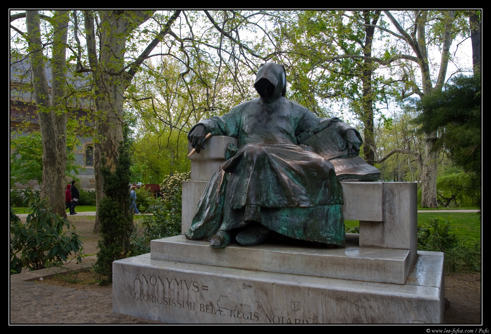 Ainsi que la statue d'Anonymus: c'est un chroniqueur anonyme du Moyen Âge qui rédigea les premières chroniques du pays. On dit que de toucher son stylo porte chance pour les études.