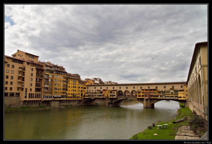 Nous ferons une halte pour admirer le Ponte Vecchio. Nous sommes un peu déçus d’ailleurs. Il nous semble pas entretenu. Il y a des tags, le crépit se détache, etc… bof bof. Et en plus la foule pour ce week-end n’aide pas à nous faire apprécier le pont