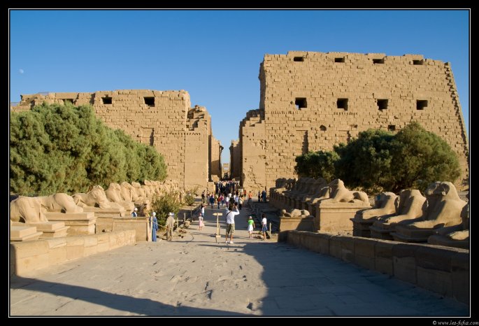Il est 15h de l'après-midi, on prend un thé dans la maison de notre chauffeur, puis nous reprenons le ferry pour rejoindre Louxor. On se trouve rapidement un taxi et nous partons pour le temple de Karnak (lien Wikipédia)