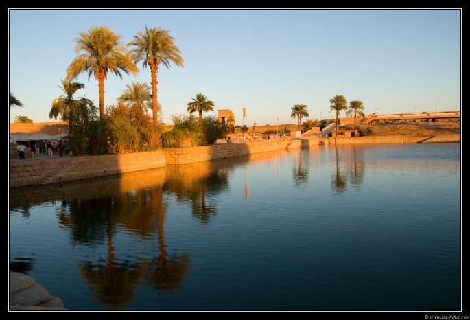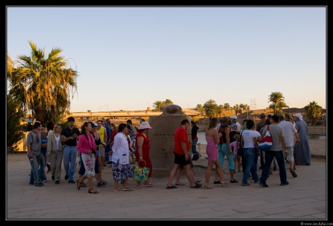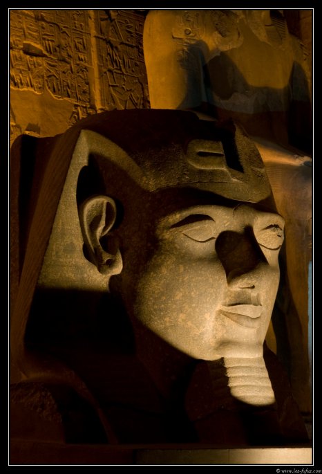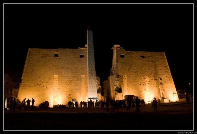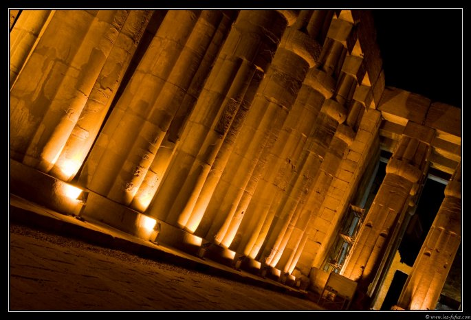 La journée a été très éprouvante, mais nous ne sommes pas encore assez fatigués !! Après s'être débarbouillé et reposé un peu, on file visiter le temple de Louxor, à 5 minutes à pied de notre hôtel. Il faut savoir que ce temple est l'un des rares que l'on puisse visiter de nuit illuminé seulement par les éclairages.