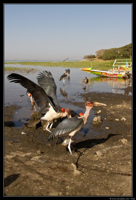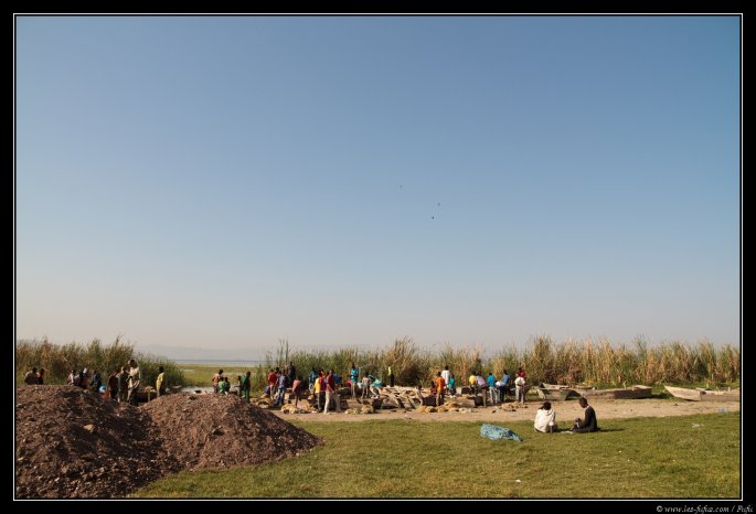 Sur le bord du lacs, on trouve bien sur les bateaux, entourés par de nombreux oiseaux venus profiter du festin.