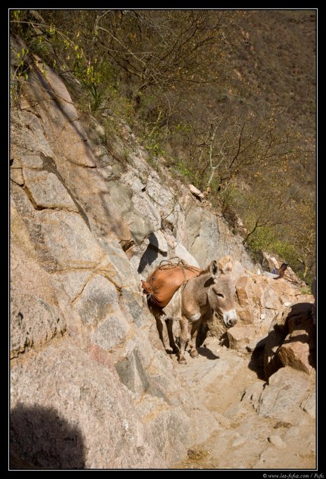 Qui plus est, nous devons par moment laisser passer les ânes qui inlassablement font l’aller-retour.