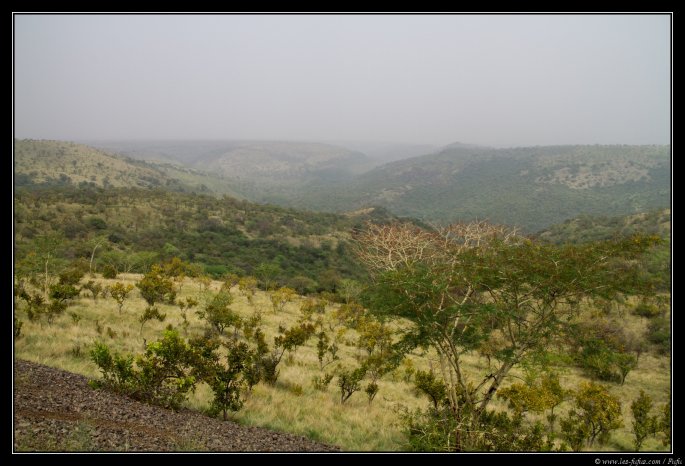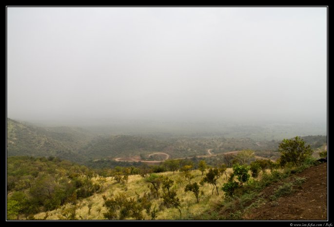 )) et nous partons vers l’ouest. Il a plu durant la nuit, ce qui nous évite d’avoir de la poussière sur la piste. En contrepartie, il reste beaucoup de brume, ce qui nous empêche de voir le paysage lors de la longue descente qui nous emmène dans le parc national Mago. Ce parc possède de nombreux animaux, mais la dense végétation et le bruit régulier de la route gène toute observation : les animaux sont trop dérangés et peuvent facilement se cacher. De plus, malgré le fait que l’on doive payer pour « visiter » ce parc, on ne le visite pas vraiment : la seule route de la région traverse le parc. Il n’y aucune installation ni points d’observation. Ca ressemble plus à une route à péage-