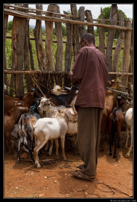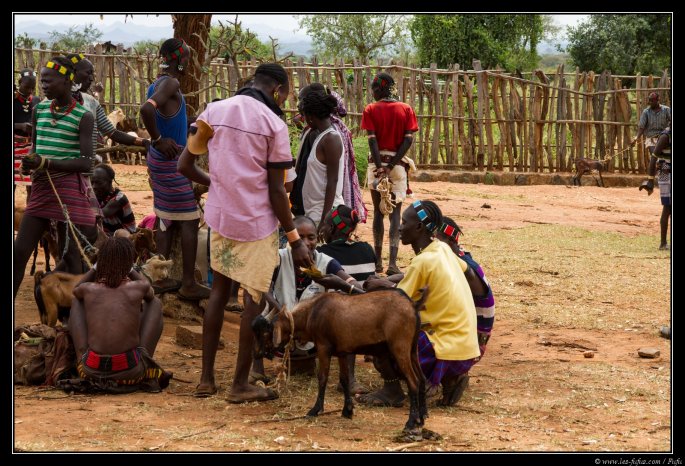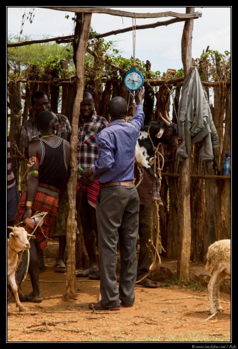 Pour les vaches, on ne les pèse pas bien sur. Tout se passe par la négociation. Les animaux sont tous en parfaite santé. Les éthiopiens prennent grand soin de leur bétail, vu que c’est leurs seules richesses. A ce sujet, et afin de protéger les animaux des mauvais esprits (et aussi pour des raisons esthétiques ou bien pour différentier les animaux), beaucoup de vaches sont « décorées » au fer rouge afin de faire des dessins sur leur corps. Ils découpent aussi souvent les oreilles pour leurs donner des formes particulières.