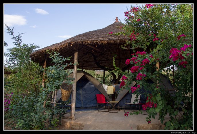 En début d’après-midi, on quitte le village et poursuivront notre route jusqu’à la ville de Turmi. Nous dormons au camping, le Buska Lodge, à quelques kilomètres du centre-ville. Cet établissement possède une partie standard (avec chambre, salle de bain privative, etc… ),mais aussi une partie camping. Mais attention, l’installation est loin d’être spartiate comme en témoignent les photos !