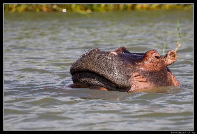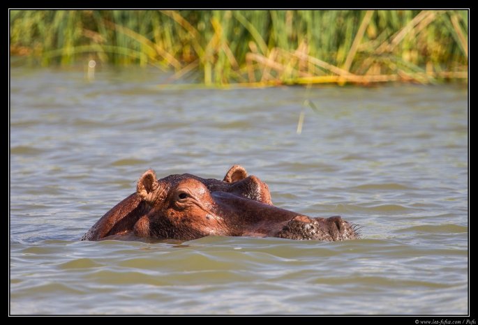 Nous glissons sur l’eau quand nous apercevons le deuxième animal que nous sommes venu voir ici : l’hippopotame ! Ils sont là, un petit groupe de 5-6 individus, nous observant attentivement, tout en continuant à manger au fond de l’eau. Dans la ballade que nous ferrons, nous verrons en tout et pour tout 2 à 3 groupes d’individus. Pour nous, c’est une nouvelle expérience, nous n’avions jamais cette animal dans son élément naturel.