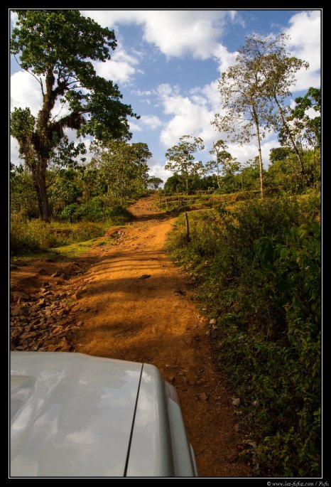 Ensuite, nous quittons l’agglomération pour quelques kilomètres afin de rejoindre notre lodge, le Dorzé Lodge. Pour y accéder, un seul moyen : emprunter une piste difficile de seulement 2 à 3 kilomètres de long. Aujourd’hui ça ne pose pas de problème, mais durant la saison des pluies, les véhicules mettent jusqu’à 2 à 3 heures pour réussir à rejoindre les portes du lodge – les touristes finissant bien souvent a pied sur la dernière partie.