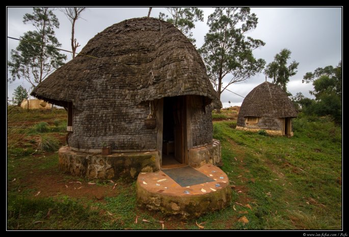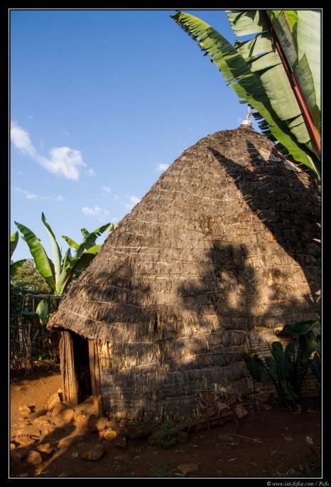 ), on va visiter un village traditionnel Dorzé situé à 15 minutes de marche. Les maisons Dorzé sont encore différentes de celles des autres tribus que nous avons vues : ici, tout est en bambou. Elles sont très grandes et hautes de plafond. L’intérieur est séparé entre la cuisine, la chambre, la zone de stockage et la bergerie.