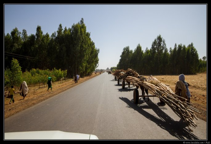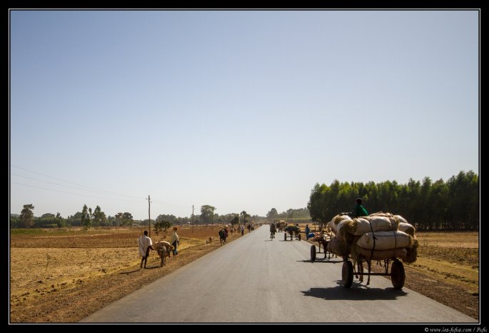 Encore un départ assez tôt (qui a dit que les vacances, c’était pour se reposer). Nous partons à 8h00 de Damot pour une étape de 200km jusqu’à la ville de Bahir Dar. Nous ne faisons aucun arrêt durant le trajet, mais je prends quand même quelques clichés de la voiture. On est samedi, et des centaines de gens se déplacent sur les routes pour rejoindre les différents marchés dans les villages.