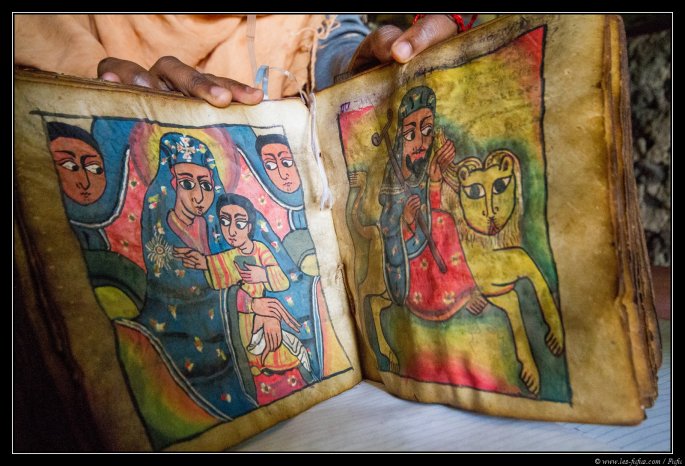 A notre arrivé, nous sommes rejoins par un moine qui sera notre guide durant la visite. Tout d’abord, il nous emmène dans un petit musée, qui possède notamment un très ancien manuscrit. Les pages sont en peau de chèvres et il est magnifiquement illustré. Le livre a plusieurs centaines d’années, et le moine le manipule sans ménagement.