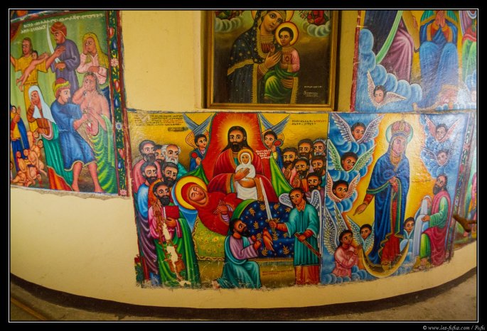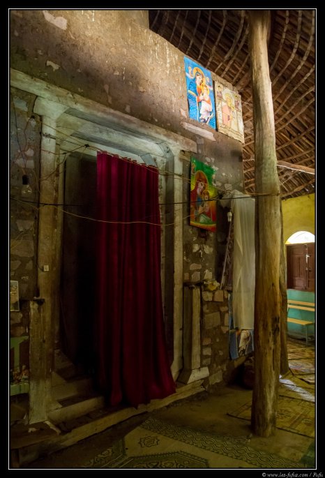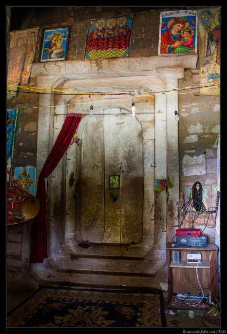 Il y a aussi une église du 12ième siècle. On arrive en pleine cérémonie. Bien entendu, ils ont aussi un petit musée pour conserver leurs manuscrits. L’église de forme circulaire protège un deuxième édifice de forme cubique.