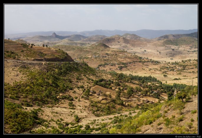 ), on reprend la route direction Gondar. Le paysage commence par de grandes plaines, puis par une route de col avec de multiples points de vue.