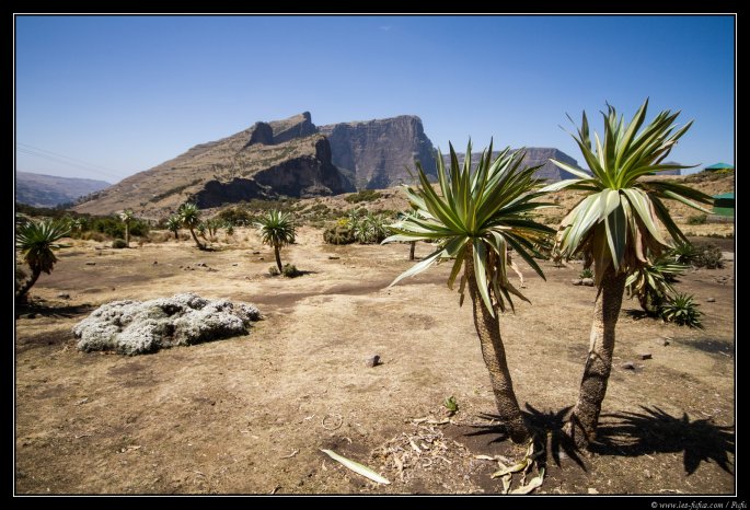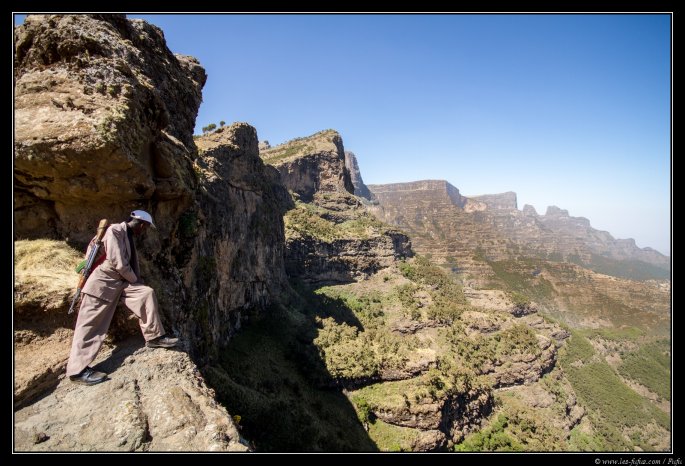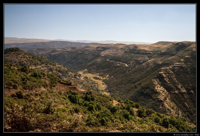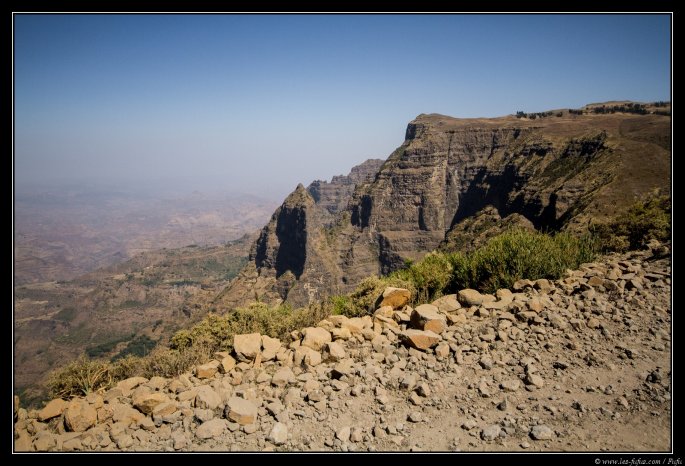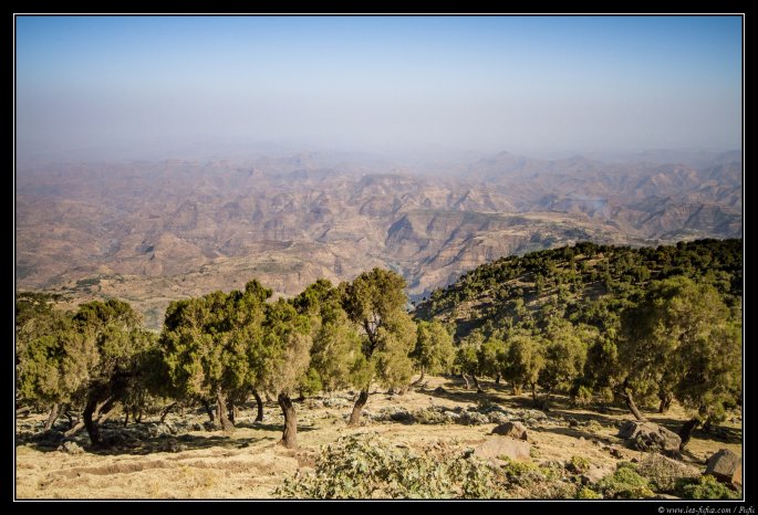 On récupère un garde armé (qui lui est vraiment obligatoire et qui de toute façon, serait venu en plus du guide), nous quittons la ville sur une piste, en route pour le parc Simien (lien sur le site de l’Unesco ). On passera l’entière matinée dans le parc, en roulant jusqu’au campement Chennek, le plus en profondeur (à ce sujet, avec un ticket d’une journée et un guide local, ces derniers refusent d’aller aussi loin et vous demande de payer deux fois plus … l’arnaque).