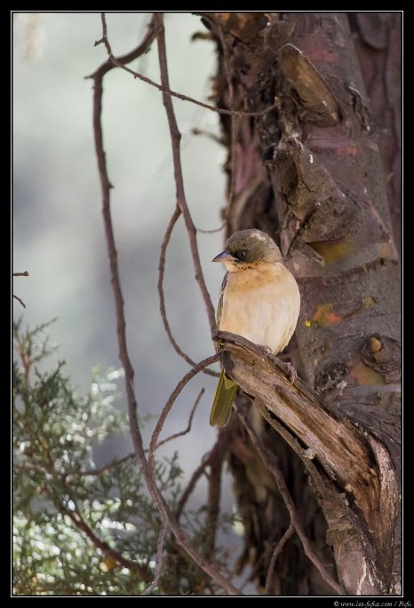 Fuad nous accompagne au restaurant de l'hôtel des 7 oliviers situé sur les hauteurs. Ils servent principalement de la nourriture européenne, mais il y a aussi de la nourriture éthiopienne bien que fortement adaptée au gout des touristes et décevant. L’hôtel a une particularité : ils nourrissent les oiseaux des environs, et il y a en permanence une centaine d’individus de toutes les espèces.