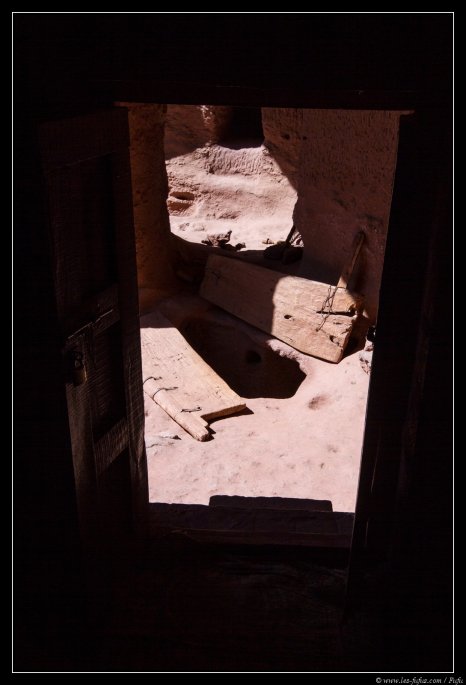 Le gardien viens à notre secours et m’indique un renfoncement dans la roche, caché par la pénombre : c’est le passage vers une vieille porte,