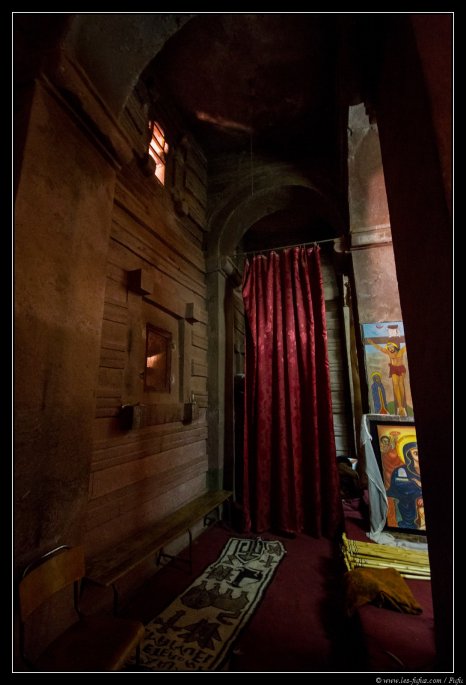 On s’extirpe tant bien que mal et nous arrivons devants les gardiens de la deuxième église, Bet Merkorios (lien Wikipédia). Ils n’ont pas l’air surpris, c’était donc bien par là.