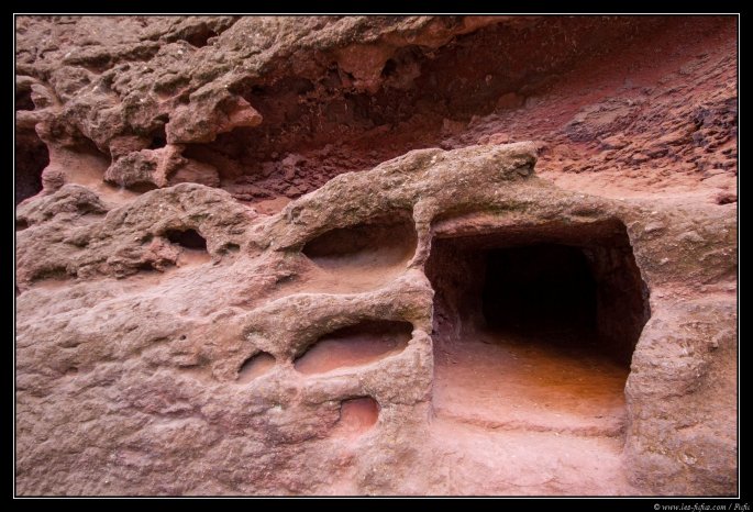 Dans les parois extérieures, de nombreuses niches ont été creusé, lieu de résidence d’ermites.