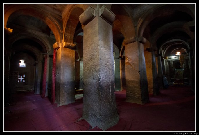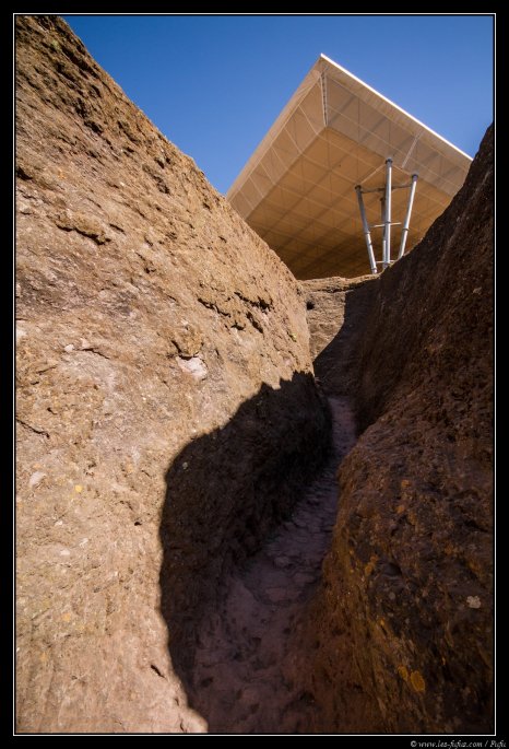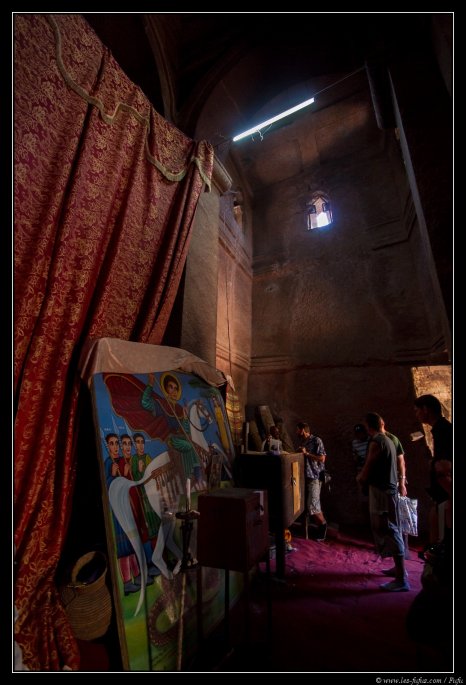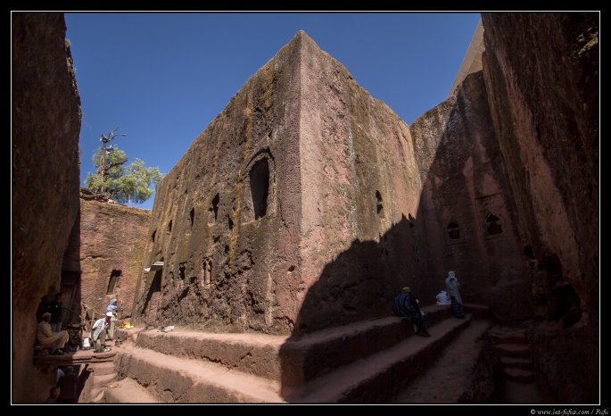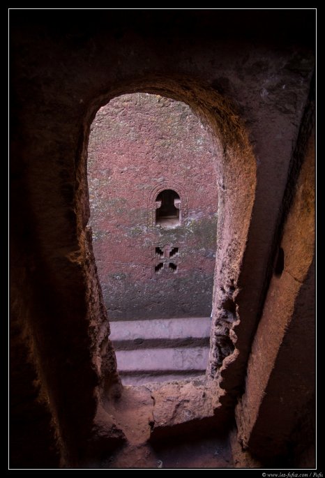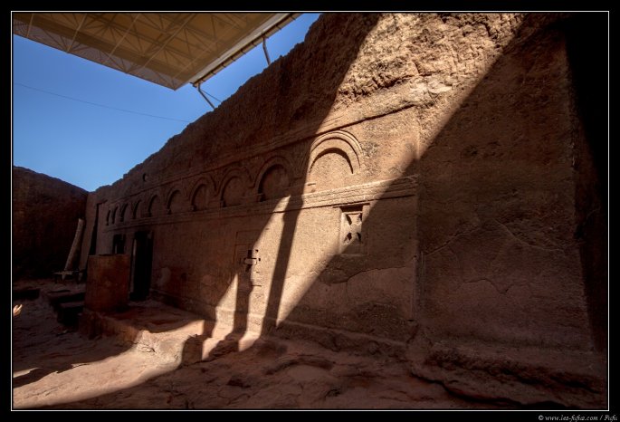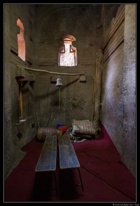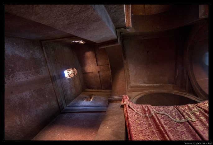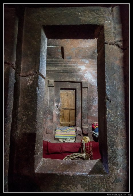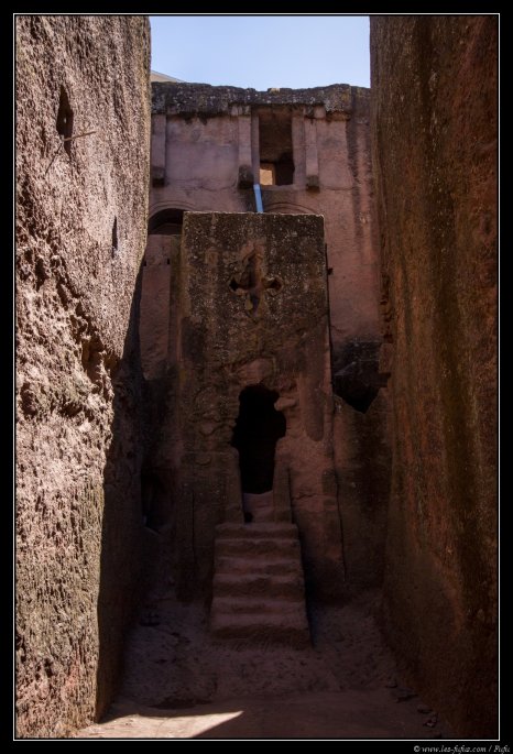 On rejoint la quatrième église du groupe Nord, Bet Debre Sina (lien Wikipédia). Les murs sont hauts et il y a peux de place pour se déplacer.