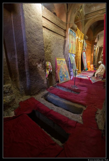 Il y a aussi une autre église creusée dans une paroi adjacente, Bet Maskal (lien Wikipédia). Nous visitons l’intérieur, beaucoup plus petit.